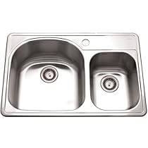 HOUZER RMC-3322SR Review: Houzer RMC-3322SR-1 Premiere Reflection 33-by-22-Inch 70/30 Double Bowl Drop-In Stainless Steel Kitchen Sink, Right Side Prep Sink. Read more »