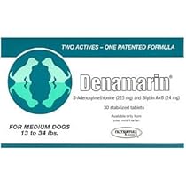 NutriMax 01-1027-02 Review: Nutramax Denamarin Tabs For Medium Dogs 13-34 Lbs. - 30 Tablets. I am grateful that Amazon.com is carrying Denamarin for dogs with liver problems. When my vet diagnosed our dog with liver disease, I was wondering how we would add the monthly expense to our budget. Amazon's service, which includes free shipping, is helpful. What would be more helpful is if Amazon would stock the chewable form of the medicine. My dog will eat the chewable form with his breakfast. With the non-chewable form, sent by Amazon.com, I have to smoosh the pill in canned dog ... Read more »